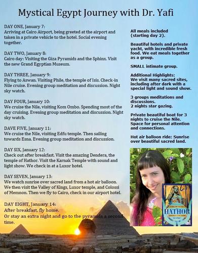 In these weekly Zoom sessions, Dr. Yafi channels transmissions from the Divine Feminine Hathor and Isis, and occasionally Viola the fairy, and other multidimenional entities. In each session the participants ask questions and receive guidance from these loving, wise, beings, and most transmissions begin with Field Tuning and Light Language.